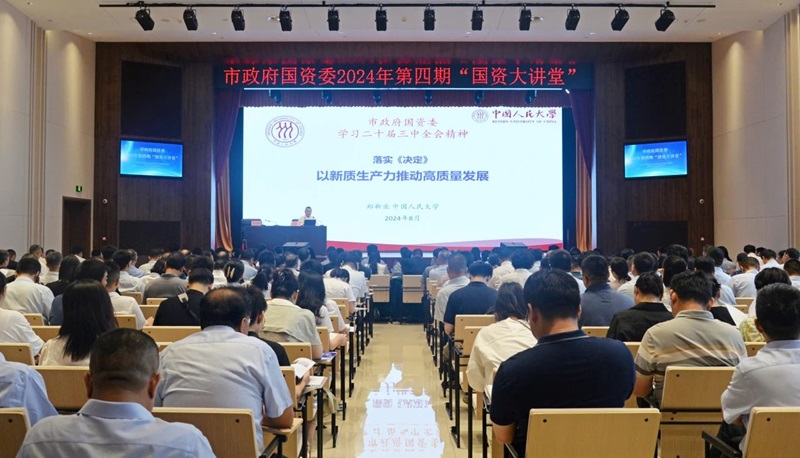 黨的二十屆三中全會(huì)擘畫(huà)了進(jìn)一步全面深化改革、推進(jìn)中國(guó)式現(xiàn)代化建設(shè)的新藍(lán)圖,黨中央、省委、市委要求切實(shí)抓好黨的二十屆三中全會(huì)精神的學(xué)習(xí)宣傳和貫徹落實(shí)。8月13日上午,市政府國(guó)資委在鄭州水務(wù)集團(tuán)有限公司智慧水務(wù)中心舉辦2024年第四期“國(guó)資大講堂”,邀請(qǐng)中國(guó)人民大學(xué)黨委常委、副校長(zhǎng)鄭新業(yè)教授圍繞《學(xué)習(xí)黨的二十屆三中全會(huì)精神 以新質(zhì)生產(chǎn)力推動(dòng)高質(zhì)量發(fā)展》作專(zhuān)題輔導(dǎo)。